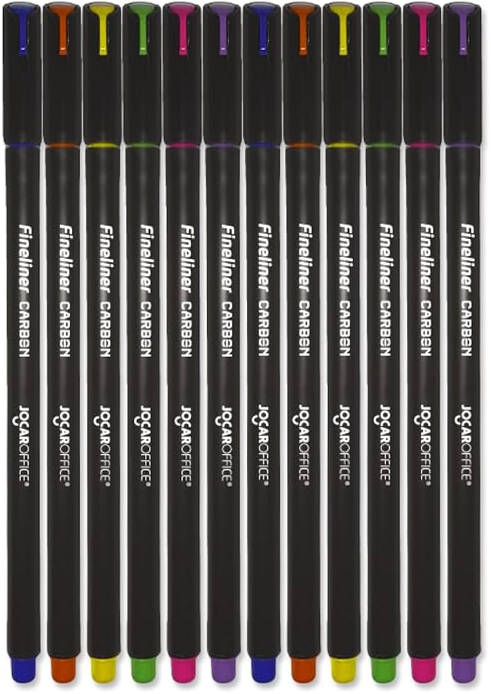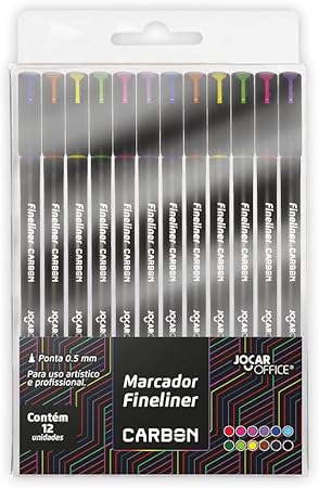 O Marcador Fineliner Ponta 0.5 Carbon Line - Estojo c/ 12 Cores da marca Jocar Office é um conjunto de canetas de ponta fina (0.5 mm) ideais para detalhamento, escrita, desenho técnico, esboços e ilustrações.